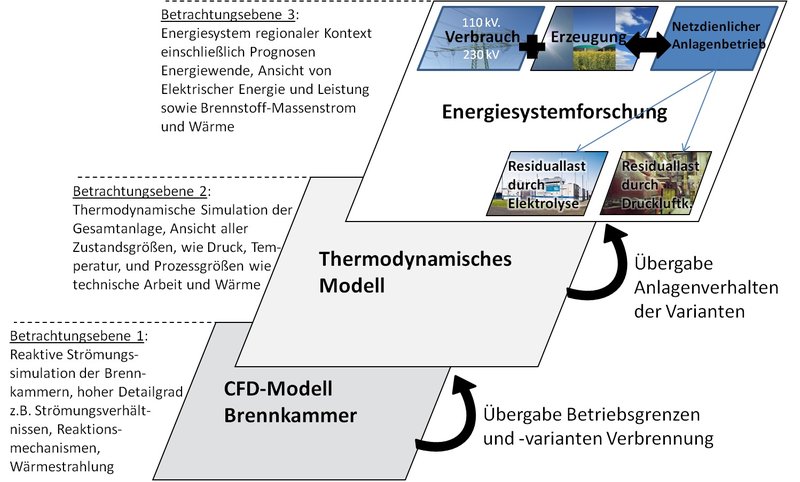 Das Projektteam wird unter der Leitung von Professor Roman Weber vom Institut für Energieverfahrenstechnik und Brennstofftechnik, Professor Hans-Peter Beck vom Institut für Elektrische Energietechnik und Energiesysteme und Uwe Krüger als Projektleiter seitens Uniper in den kommenden zwei Jahren verschiedene Anlagenvarianten mit dem Ziel untersuchen, unter welchen Bedingungen bei hoher Kraftwerkseffizienz die Wirtschaftlichkeit bei CO2-freiem Betrieb ermöglicht werden kann. Die Projektbearbeitung umfasst drei Betrachtungsebenen: erstens eine mikroskopische Betrachtung der neuartigen Hochdruck-Wasserstoff-Verbrennung mittels Computersimulation der Reaktions- und Wärmeübertragungsmechanismen durchführen; zweitens eine thermodynamische Analyse des gesamten Kraftwerksprozesses erstellen und drittens eine makroskopische Betrachtung des regionalen Energiesystems mit dem Speicherkraftwerk als netzdienlicher Kernkomponente durchführen. Die Betrachtungsebenen sind eng miteinander verknüpft und ermöglichen eine ganzheitliche und anwendungsnahe Evaluierung und Entwicklung. „Ich bin sehr gespannt auf die Ergebnisse und freue mich auf die Zusammenarbeit“, so Uwe Krüger.