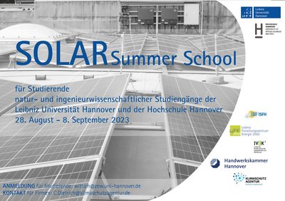 Im Zeitraum vom 28.08.-08.09.2023 findet an der Leibniz Universität Hannover (LUH) die Solar SummerSchool 2023 für Studierende natur- und ingenieuerwissenschaftlicher Studiengänge statt. Das Angebot steht auch Studierenden der TU Clausthal offen.